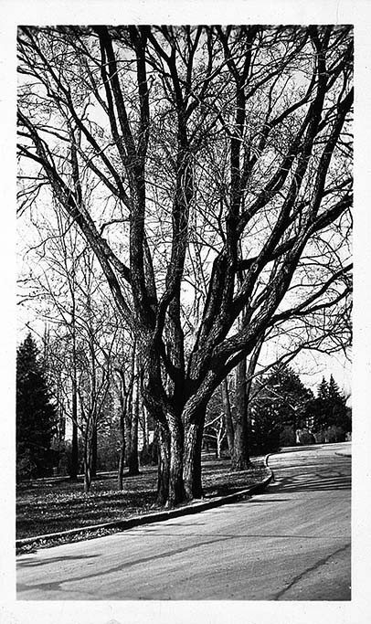 Hackberry trees on the side of a road on Kansas State Agricultural College campus