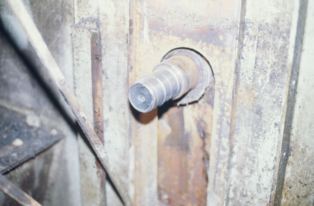 Badly worn shaft for boot pulley of number three leg.