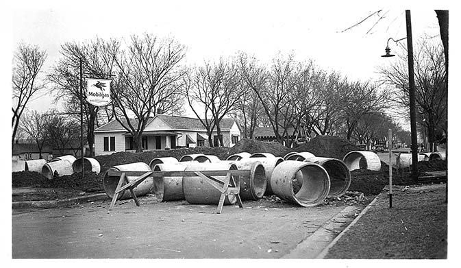 Lock-joint concrete sewer pipe sections at Poyntz Ave and Seventeenth St, Manhattan, KS, March 25, 1934
