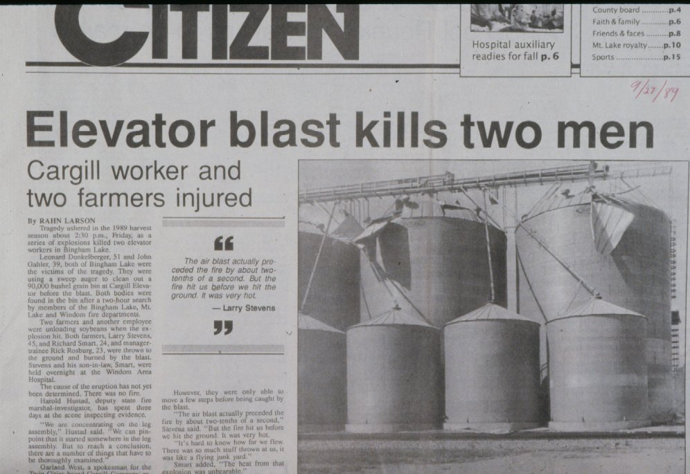 Cottonwood County Citizen news article, 'Elevator Blast Kills Two Men.'