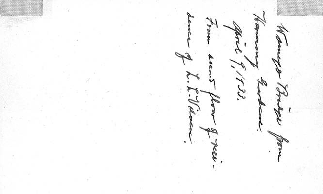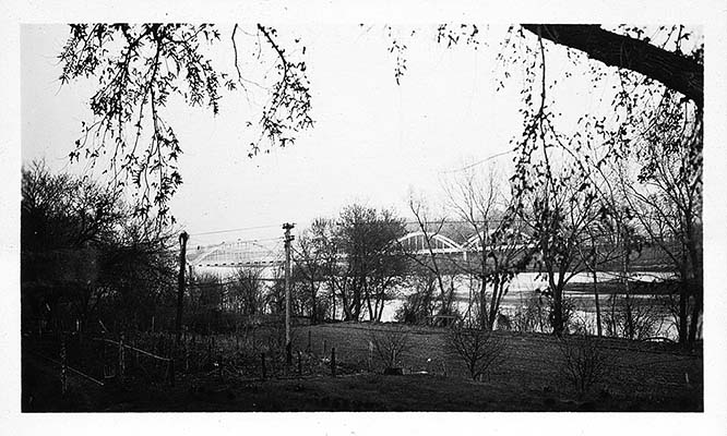 View of the Wamego bridge from Harmony Gardens, April 9, 1933
