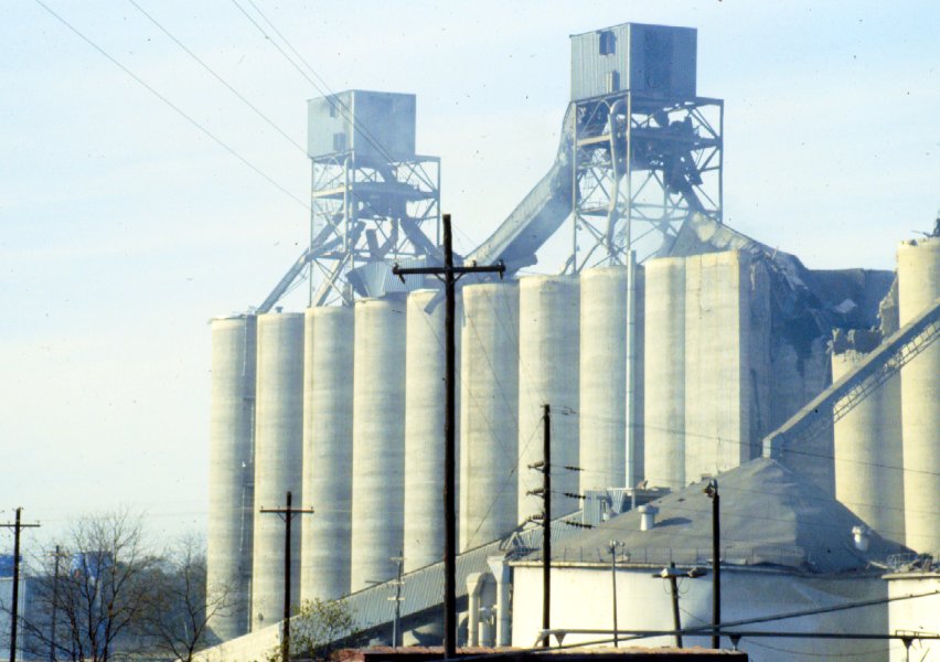 Conveyor damaged on new storage addition by the heat created by the burning of the conveyor belt, set afire by the explosion.