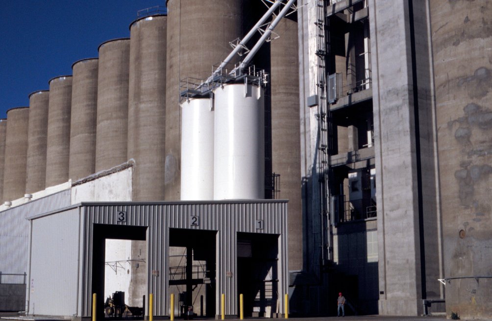 New truck receiving station, white tanks on roof are for holding dust for shipment.