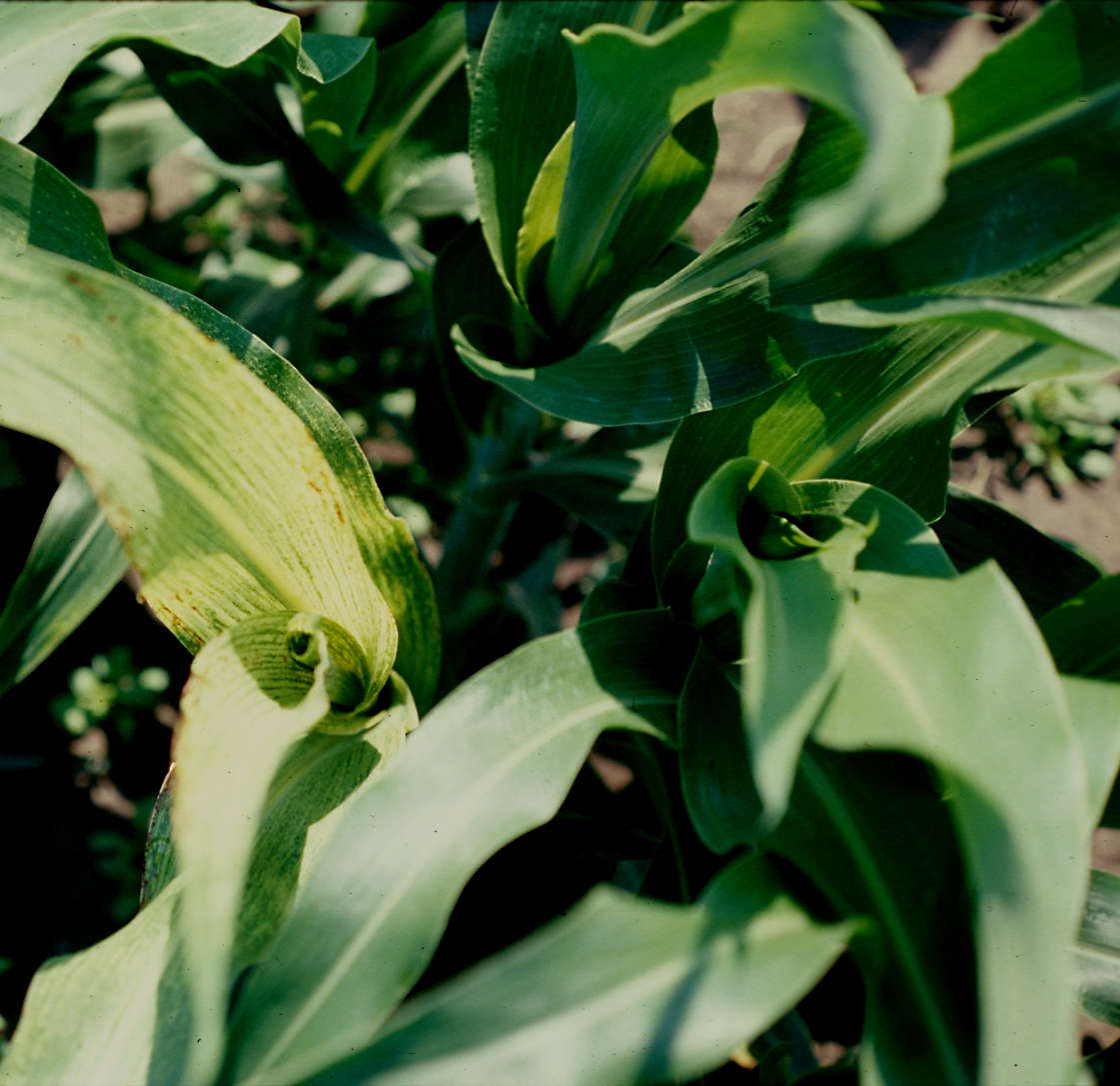 Leaves infected with MDMV emerging from whorl