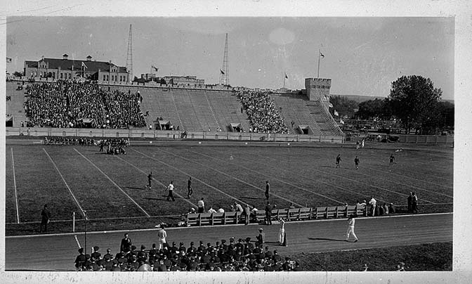 Kansas State College and University of Oklahoma football game in Memorial stadium