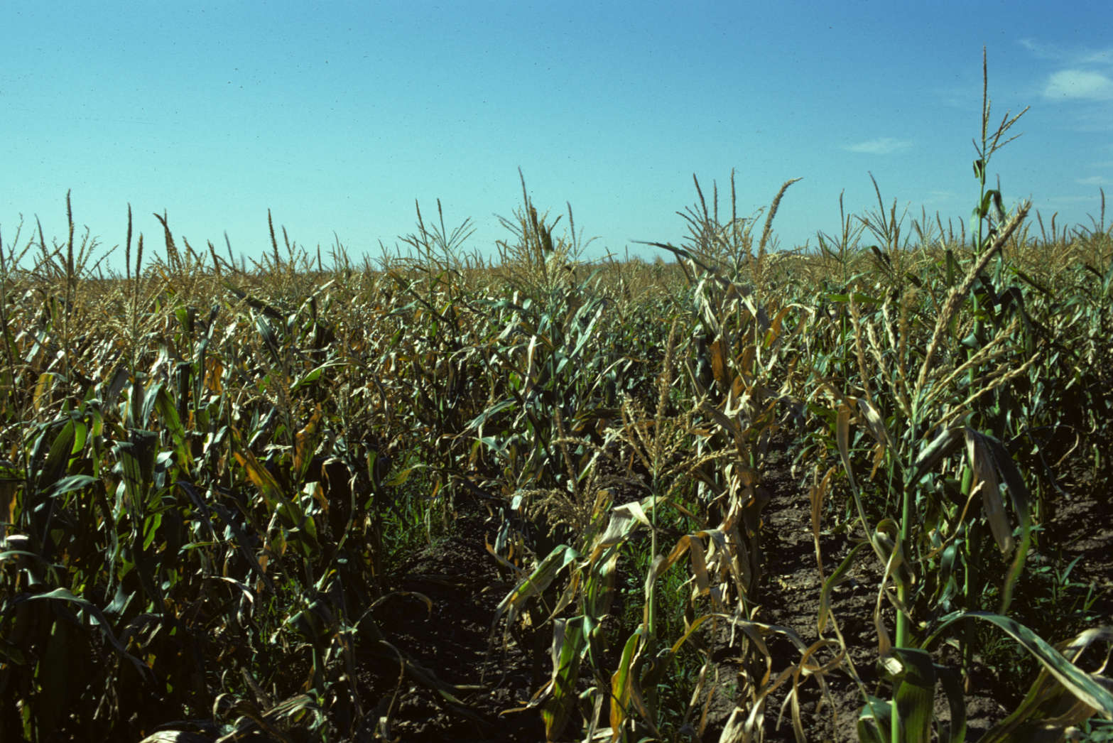 Corn field exhibiting a high incidence and severity of goss’s wilt.