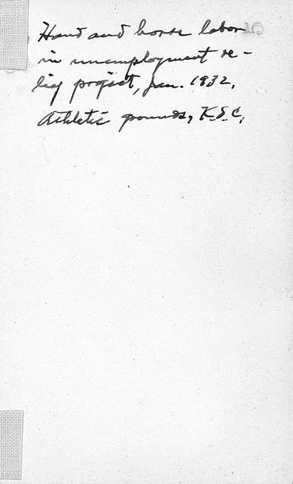 Hand and horse labor for an unemployment relief project concerning Kansas State Agricultural College athletic grounds