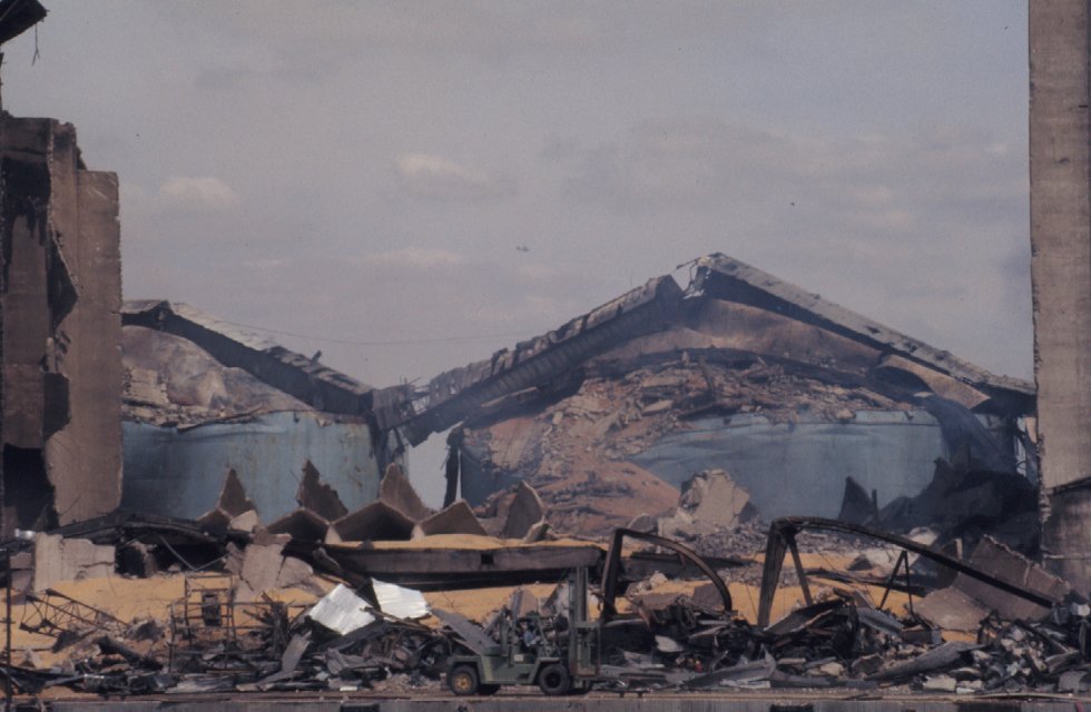 View of damage from across side channel.