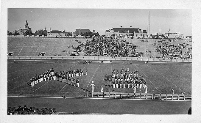 Kansas State College band in a KS formation