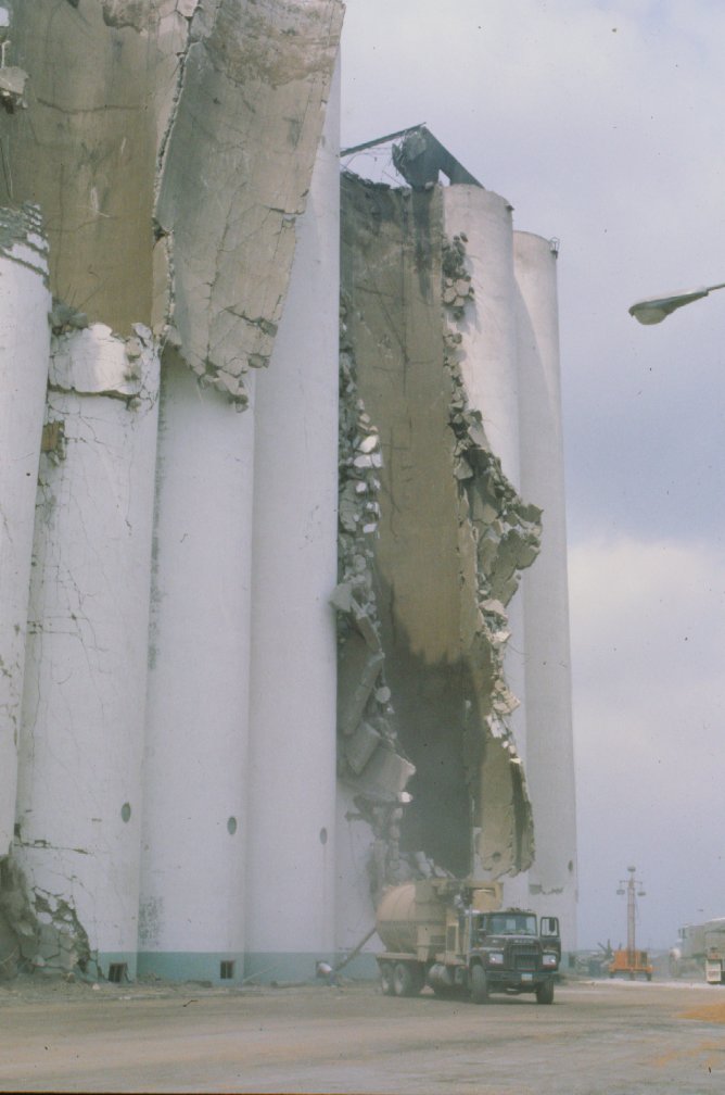 Severe damage to silos in the "E" house.
