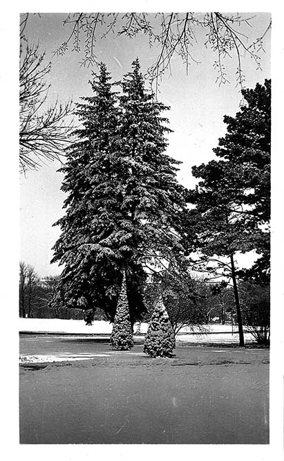 Trees on campus between Anderson and Fairchild Hall
