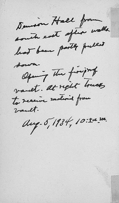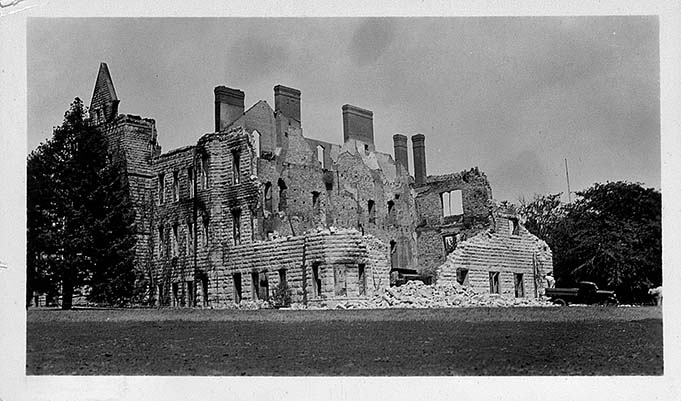 Walls partially pulled down on the southeast side of the Denison Hall ruins