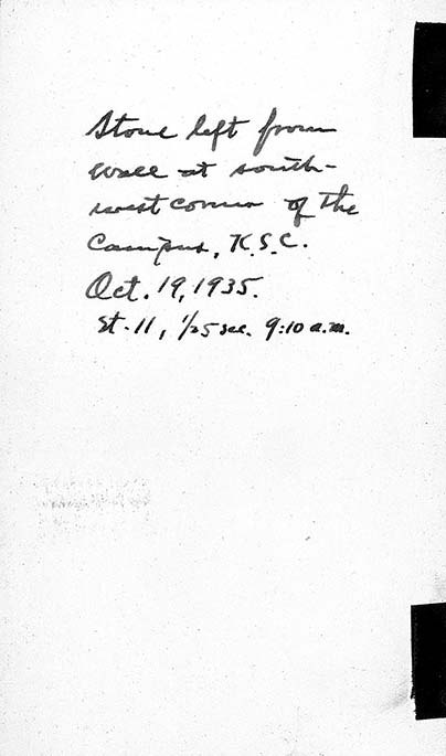Stone at the southwest corner of the K.S.C. campus, October 19, 1935