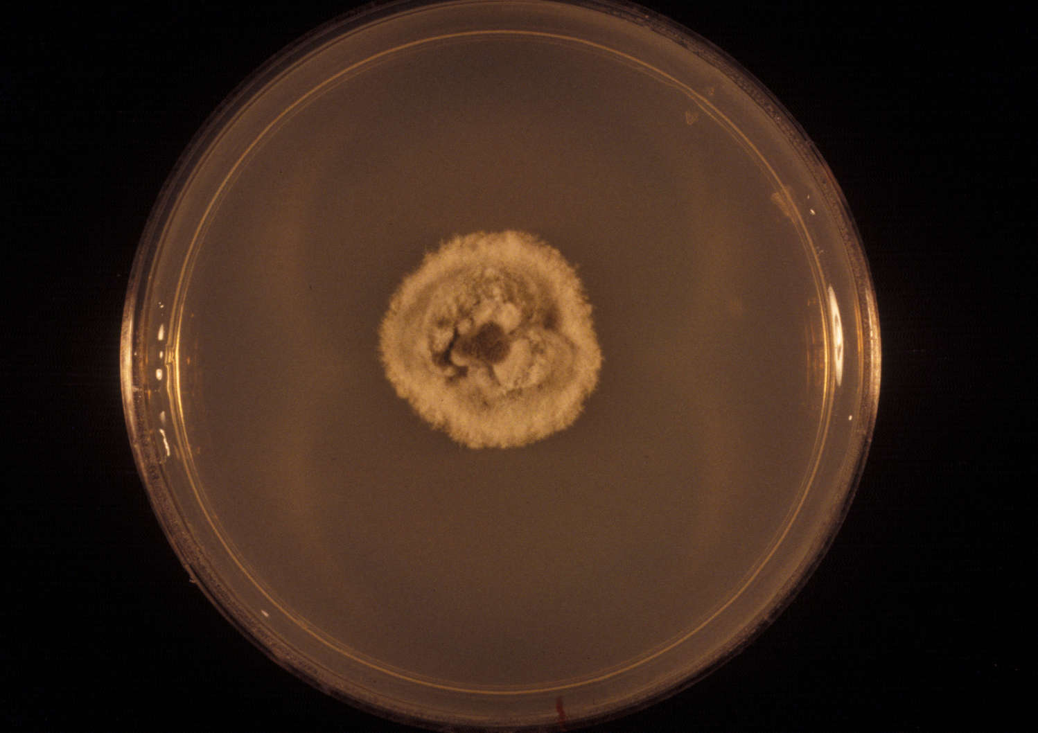 Colony of R. sorghi growing on difco potato dextrose agar. 10 days growth.
