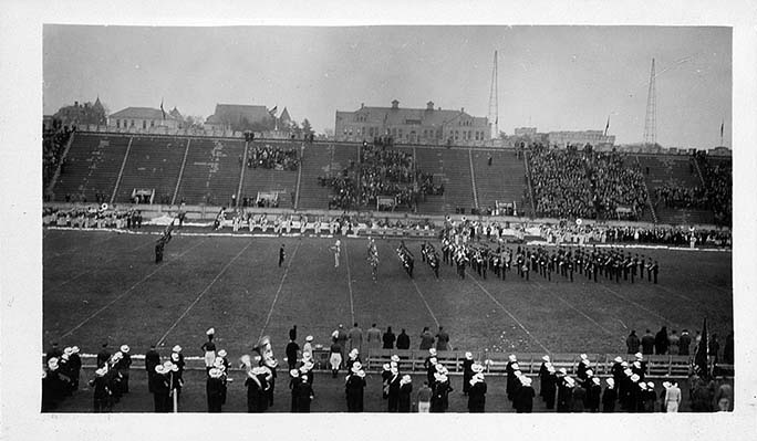 Bands waiting to perform at the Kansas State College versus Fort Hays Kansas State College football game