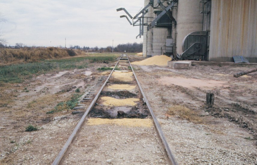 Grain spills from loading railcars.