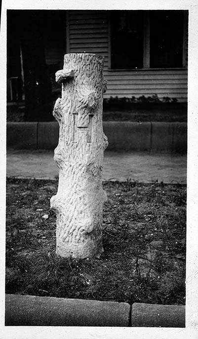 Stone hitching post at 516 Colorado St, Manhattan, KS, July 26, 1934