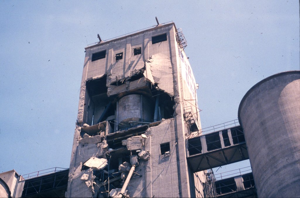 Damage to west side of headhouse, wall of office near scale blown out, two of three men survived plus one man cleaning on floor above.