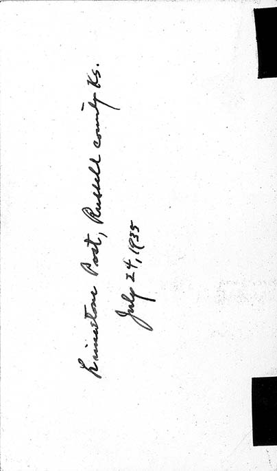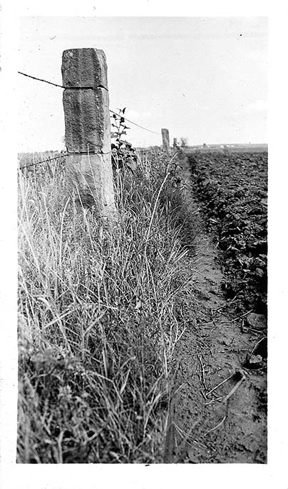 Close-up of a limestone fencing post in Russell County, Kansas, July 24, 1937