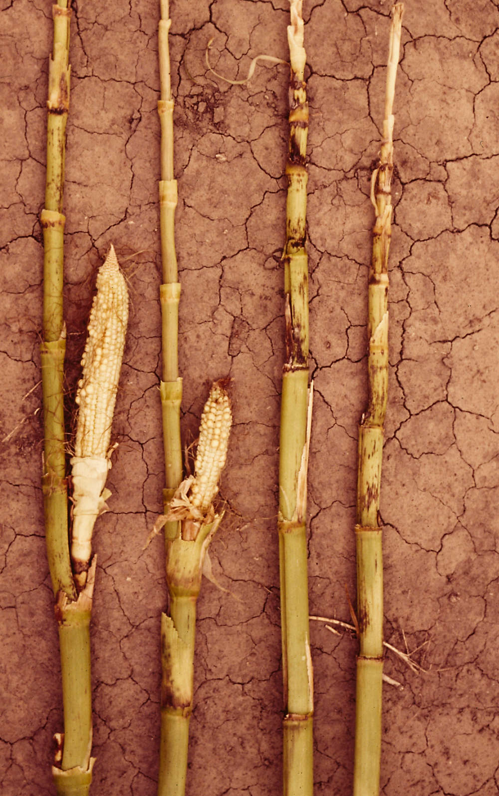 Poor grain fill and aborted ears due to CLN in a field with a high incidence of infection.