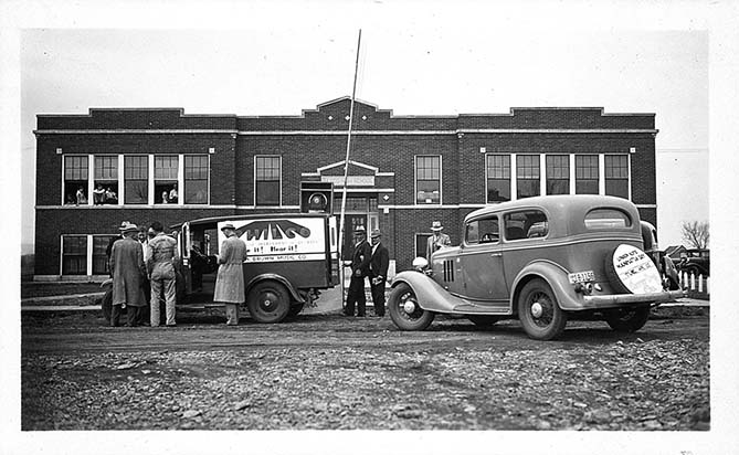 Union Pacific Railroad and Manhattan Chamber of Commerce Goodwill Trip, Paxico High School, Paxico, KS, April 7, 1934
